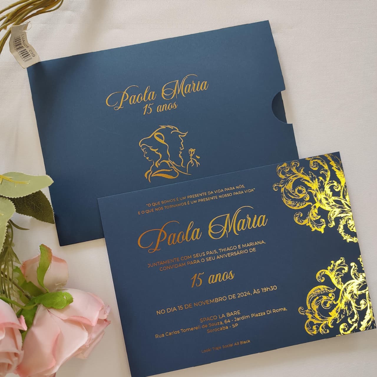 Convite 15 anos / Debutante C/ Envelope Bela e a Fera