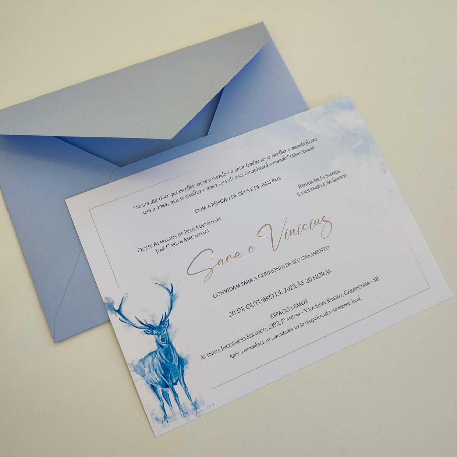 Convite Casamento com Envelope Azul Serenity Harry Potter