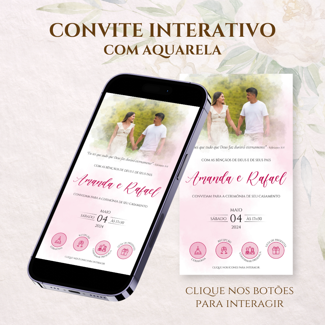 CONVITE DE CASAMENTO DIGITAL / VIRTUAL INTERATIVO COM AQUARELA
