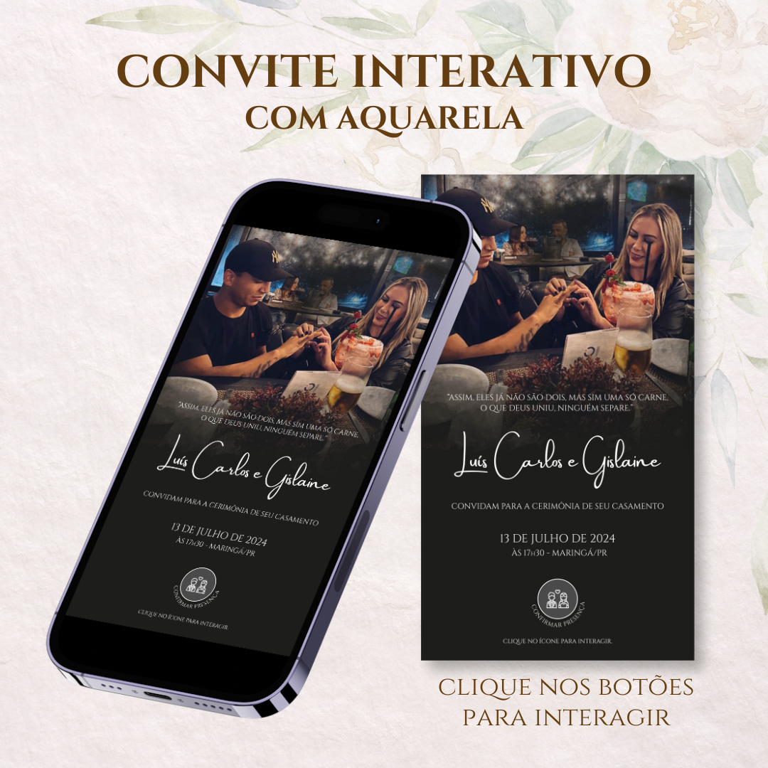 CONVITE DE CASAMENTO DIGITAL / VIRTUAL INTERATIVO COM AQUARELA